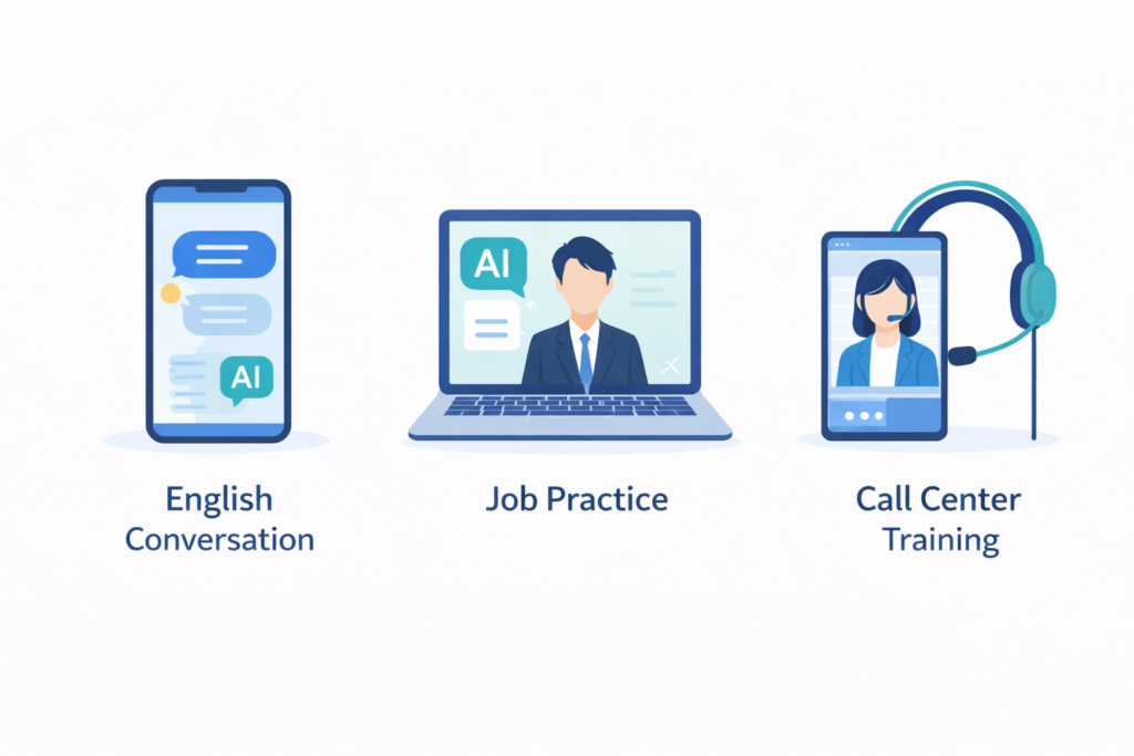 2026年、AIロープレは実用レベルに達しています。実は私たちの身近なところで、すでに「AIを相手に練習する」体験は浸透し始めています。日常でよく目にする例を3つに絞って紹介します。