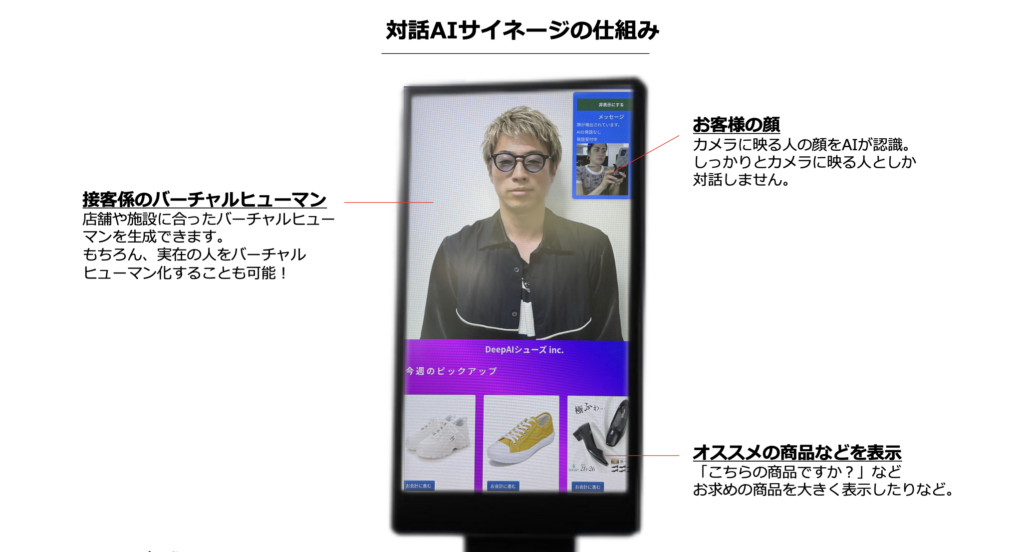 その範囲は広く、スマートフォンの画面上で動くWebチャットボットから、店頭のタブレットで微笑むデジタルアバター、さらには物理的に店内を移動する配膳・案内ロボットまで多岐にわたります。