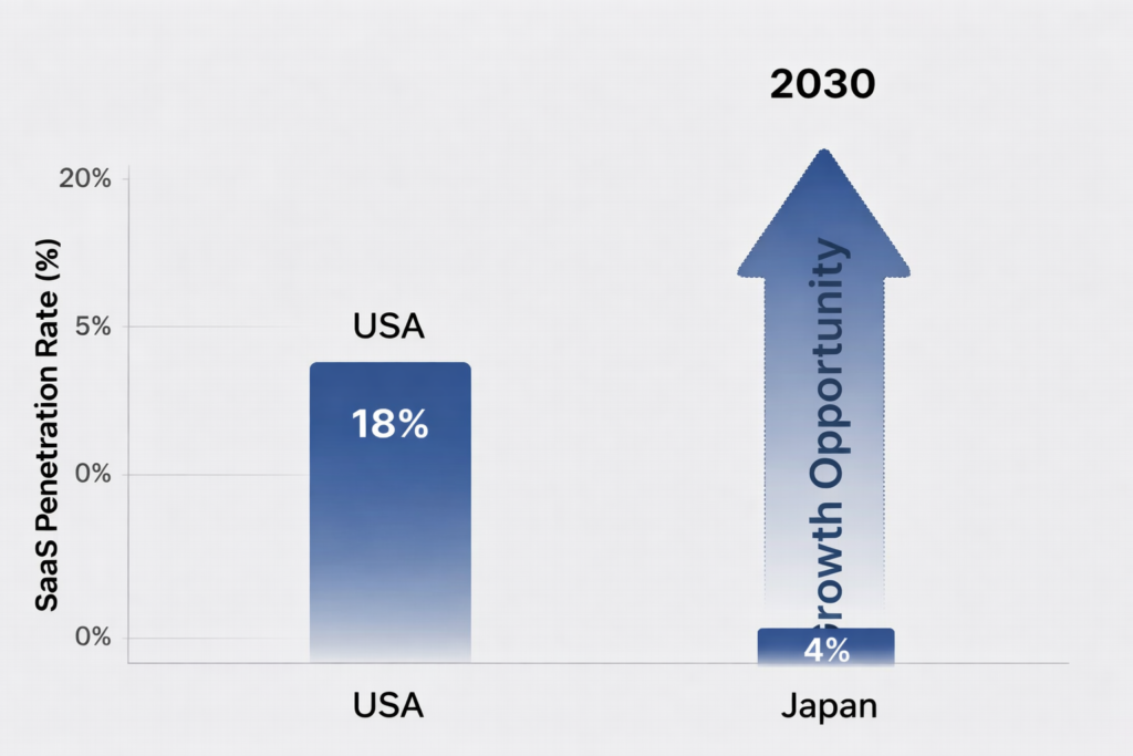 グローバルで「SaaS冬の時代」が叫ばれる中、日本市場だけが明確に別の方向を向いている。理由は単純だ。日本はSaaSの浸透率がまだ著しく低い。
