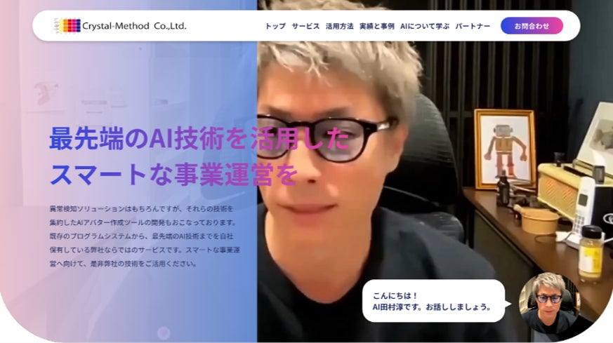クリスタルメソッド株式会社が提供する「人のサポートをするAI、DeepAI」は、デジタルツインの技術を活かし、人を再現する技術です。AIでのカスタマーサポートは年々社会にも浸透し始めており、人手不足の解消や業務効率に役立っています。
